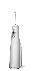 Portable Waterpik Water Flosser For Teeth and Gum HealthRechargeable and portable, the Waterpik Cordless Pearl water flosser is the perfect tool to help keep your pearly whites clean and your gums healthy at home and on the go. The Cordless Pearl offers 2 settings, up to 45 seconds of flossing time, global voltage compatibility, and a rechargeable battery that provides up to 4 weeks of use. |