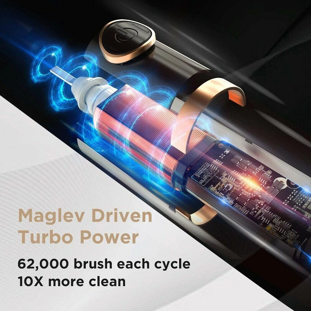 1)Maglev Driven Turbo-Powered Clean - Equipped with the latest sonic tech 3rd Generation Maglev Motor , delivering 62,000 brushes each cycle