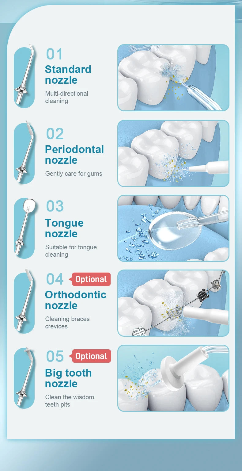 4 cleaning modes with memory function: the cleaning machine has Soft,Normal,Strong and DIY cleaning mode and low noise design to meet various cleaning needs. The innovative memory function keeps your preferred mode. Even if you turn off the portable water dental cleaner, you can continue to use it next time.