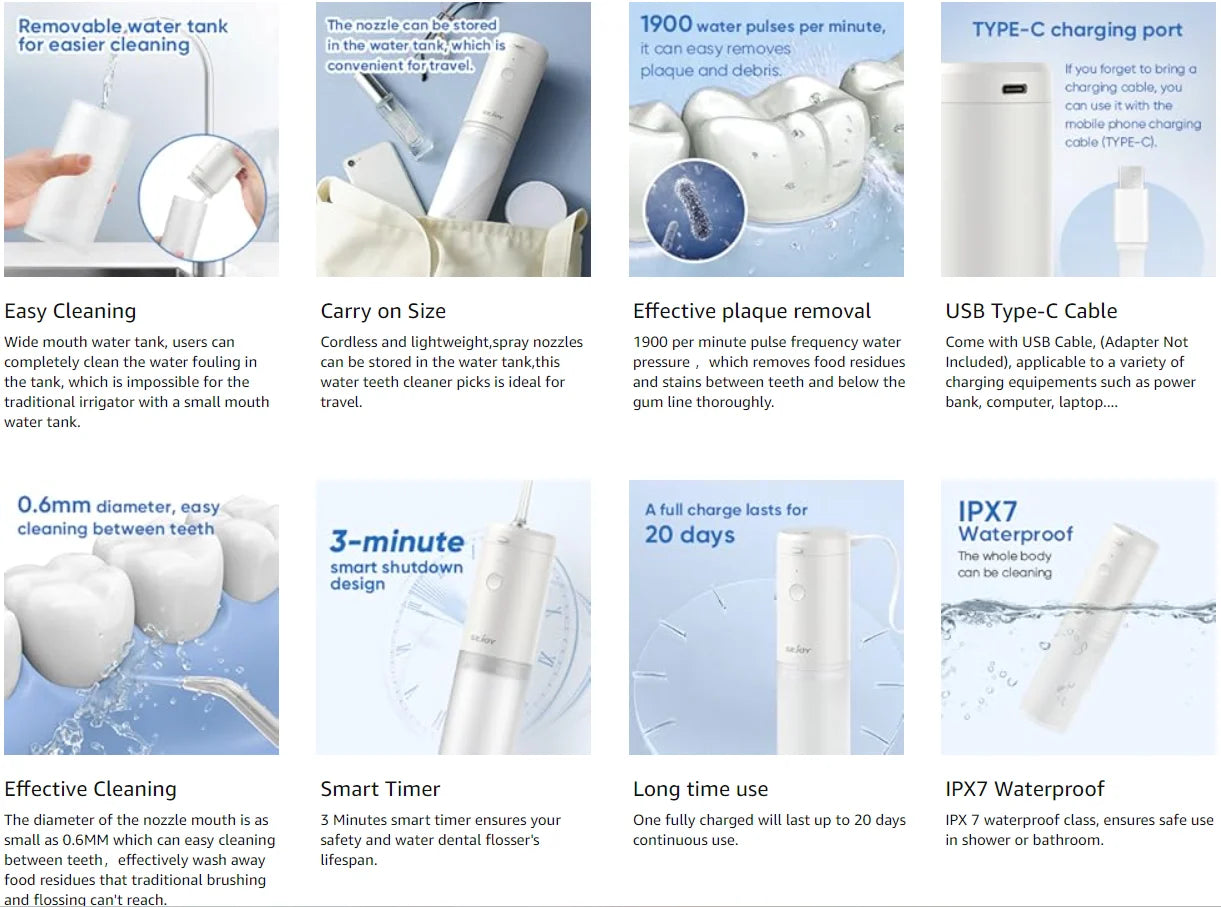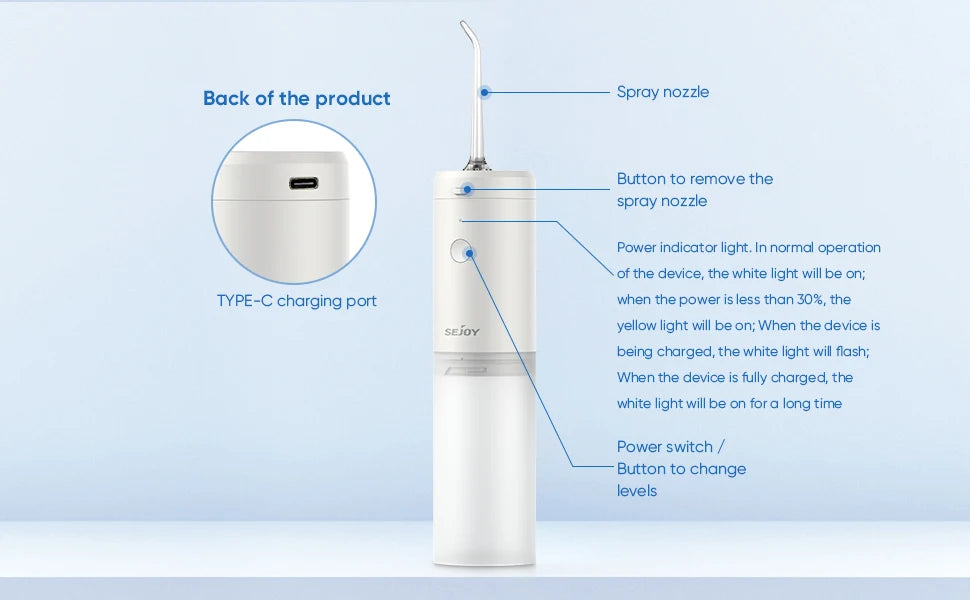 SEJOY Oral Irrigator Electric Water Flosser For Teeth Dental Oral Irrigator Portable Rechargeable Portable Teeth Cleaner