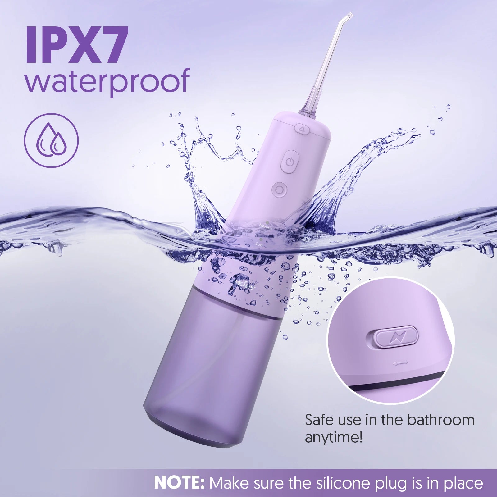 3.【300ML Detachable Water Tank & IPX7 Waterproof 】: 300ML large water tank provides enough and uninterrupted oral dental flossing .With double-sealing rings, This cordless water flosser Picks prevent water leakage reliably, water flosser with non-slip design can use for shower in the bathroom and .The water tank is detachable so you could clean it easily.