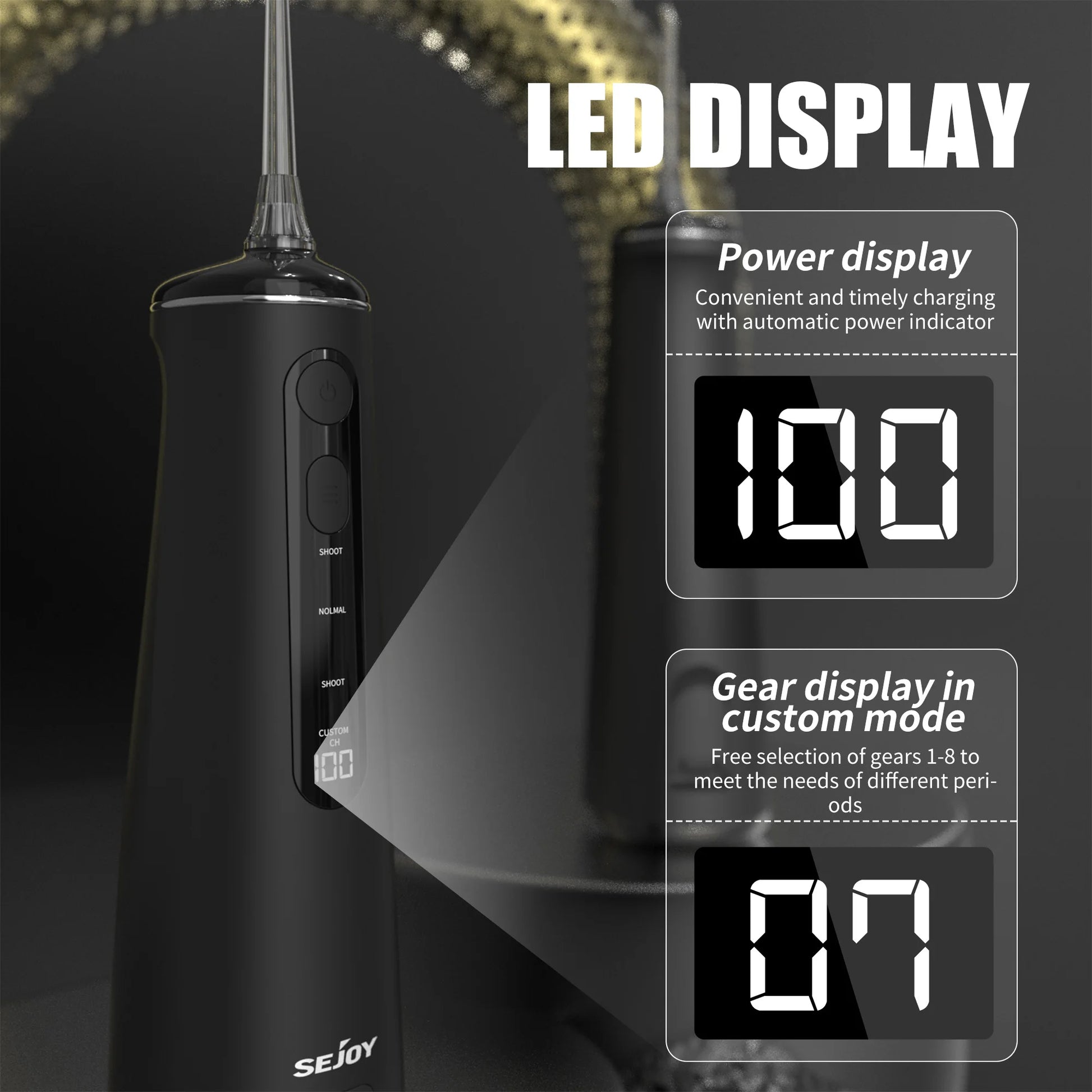 • Electric Oral Irrigator :As an electric oral irrigator, it provides a more powerful and effective cleaning compared to manual flossers, reducing the risk of oral health problems.
