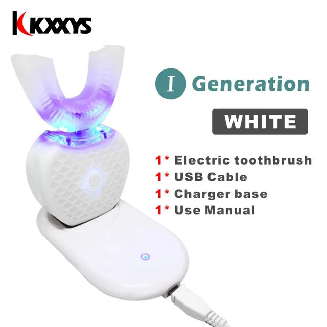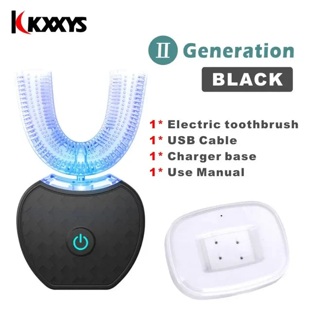 By ultrasonic technology, combined with U type design, using only a 10-15 seconds to complete a 360 DEG omnibearing brushing action, so you will love brushing.